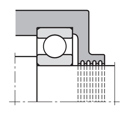 從間隙密封進化的油槽密封,是在軸承座的內徑上帶幾個同心的油槽,密封效果更好,油槽內儲存的潤滑劑可以有效地防止污染物、粉塵等的進入。