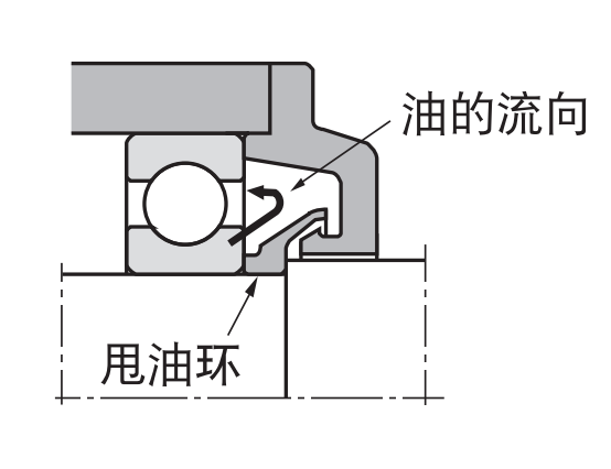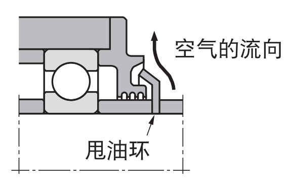 此外,還發(fā)明了斷油襯套,通過襯套凸起部位對油進行阻斷并甩出,回流到軸承座內,可以有效防止?jié)櫥托孤O嗤δ艿倪€有甩油環(huán)(flinger),利用旋轉離心力,防止?jié)櫥托孤τ铜h(huán)可設置于軸承座內側或者外側。