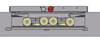 AXF系列的線性軸可以選擇配備聚合物履帶支重輪(如下圖)作為導向系統。在這種變體中,輥直接在鋁型材的表面上運行。在裝配過程中,預緊力的調整通過兩部分滑塊單元中的彈簧元件實現。