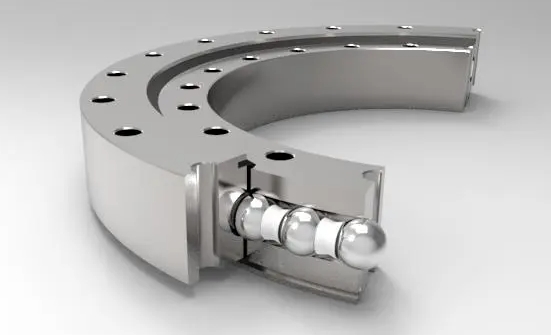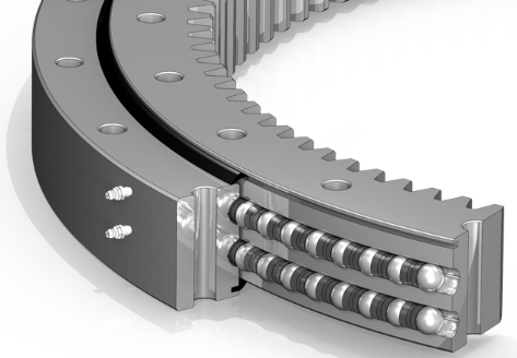 八、單列四點接觸球回轉(zhuǎn)支承(Q系列)軸承。單列四點接觸球回轉(zhuǎn)支承軸承由兩個座圈組成,結(jié)構(gòu)緊湊,重量輕,鋼球和圓形滾道有四個角,可以同時承受軸向力、傾覆力矩和大軸向力,廣泛應(yīng)用于旋轉(zhuǎn)輸送機(jī)、焊接操作機(jī)、中小型超重機(jī)器和挖掘機(jī)中。