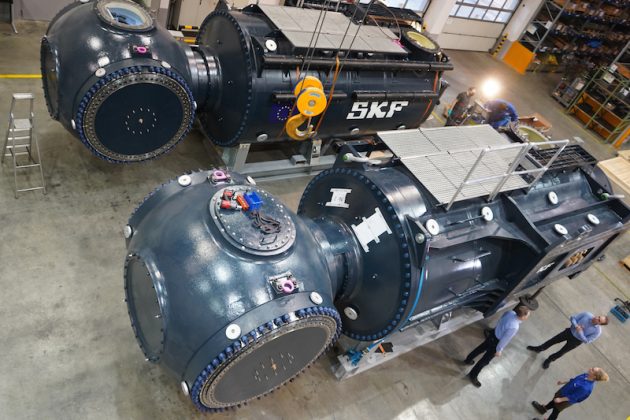 SKF的兩個完全集成的動力系統(tǒng)在該發(fā)電廠中發(fā)揮著重要作用,其安裝于兩個機翼形臂上,在潮流的驅動下,兩個直徑為21米的雙翼旋翼在其末端旋轉,發(fā)電機產(chǎn)生的電力通過海上電纜輸送到岸上。
