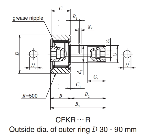 IKO CFKR22UUR軸承尺寸、參數與圖紙