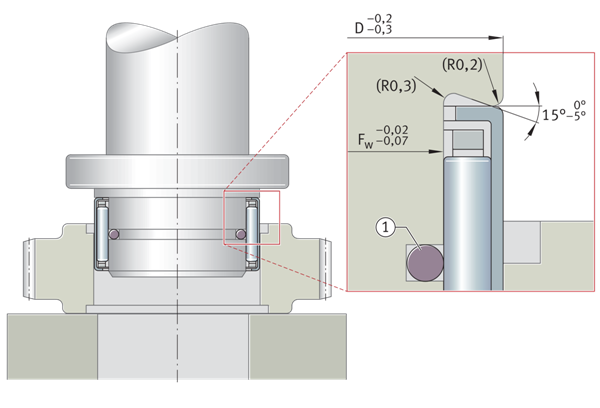 為了充分利用軸承的承載能力,從而達(dá)到必要的額定壽命,必須為外殼中的薄壁外圈提供足夠的剛性支撐。由于外表面較薄,軸承只有在緊密配合后才能采用其精確的幾何形狀。外殼孔中的外圈支撐可以制成圓柱形座面。外圈的座面和滾動元件或內(nèi)圈的滾道不應(yīng)被凹槽、孔或其他加工中斷。配合零件的精度必須滿足特定要求,殼體孔的孔公差(推薦公差等級)取決于殼體材料,如果殼體不是剛性的,則必須進(jìn)行測試,以確定使用哪一個軸公差可以達(dá)到所需的操作間隙。為了安裝軸承而不損壞,軸的導(dǎo)程倒角必須為10°至15°。