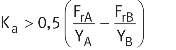 | 2 | FrA/YA > FrB/YB | Ka > 0.5*(FrA/YA - FrB/YB) | Fa = Ka + 0.5*FrB/YB | - |