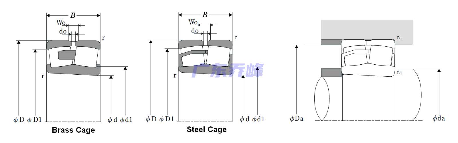 軸承型號:22222EAKW33,調心滾子軸承,帶圓錐孔&注油槽,可替換的SKF軸承型號為:SKF 22222EK軸承,其基礎型號為22222,后綴列表:【EA:EA型,帶壓制鋼保持架,高載荷】【K:錐孔,錐角 1:12】【D1:外圈潤滑油槽油孔】