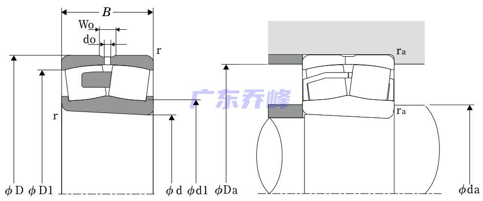 | 振動篩用調心滾子軸承 - 圓錐孔 - 尺寸 | |