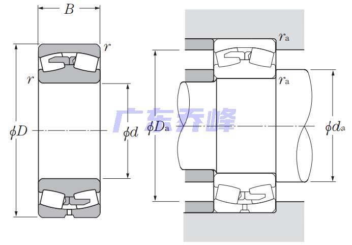 | 調(diào)心滾子軸承 - 圓柱孔,239系列 - 尺寸 | |