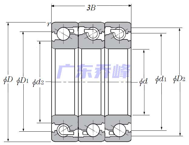 | 滾珠絲杠用三列推力角接觸球軸承 - DFT配對,開式,兩排承受軸向載荷 - 尺寸 | |
