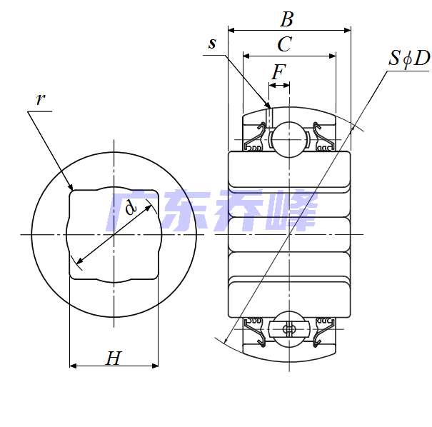 | 重型盤式軸承 - 方孔,球面外圈,2型 - 尺寸 | |