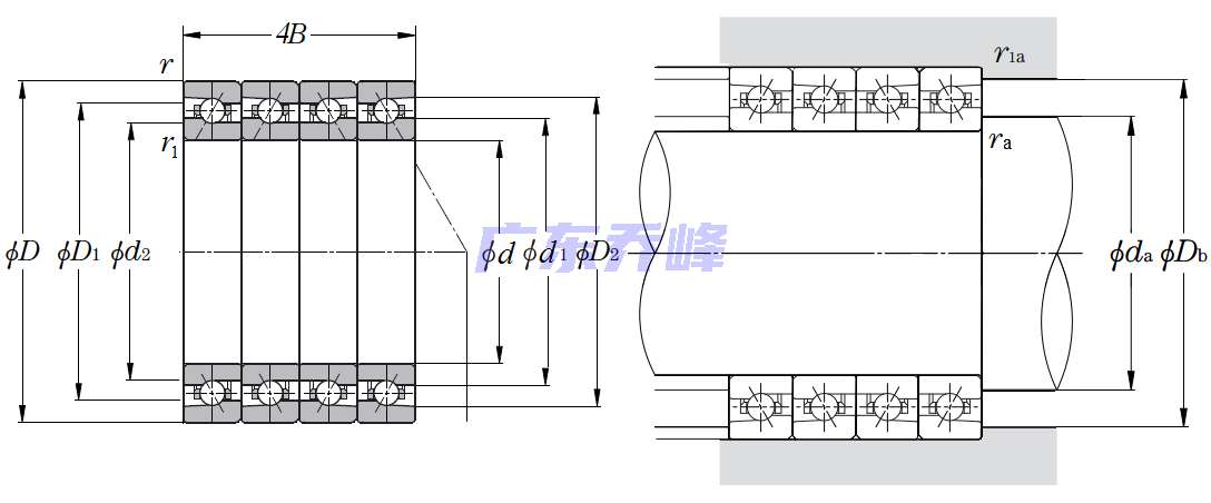 | 高速多列角接觸球軸承 - HSE Ultage系列 - 尺寸 | |