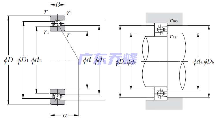 | 單列高速角接觸球軸承 - HSE Ultage系列 - 尺寸 | |