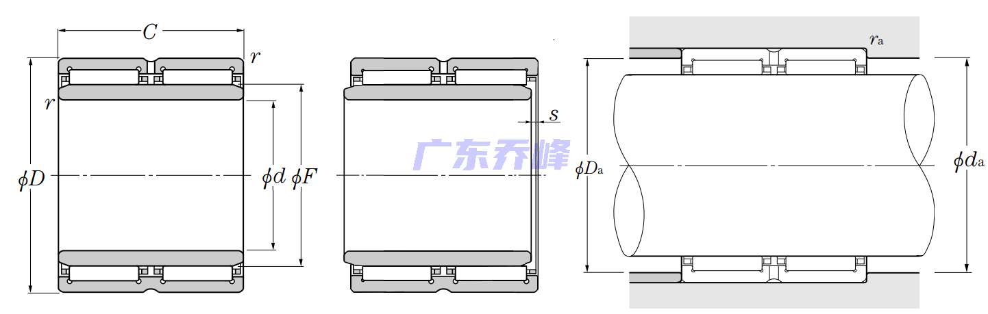 | 雙列機加工滾針軸承,w/內圈 - NA69.R系列 - 尺寸 | |
