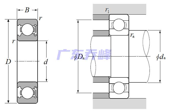 單列深溝球軸承 - 單面密封(非接觸式橡膠密封) - 尺寸