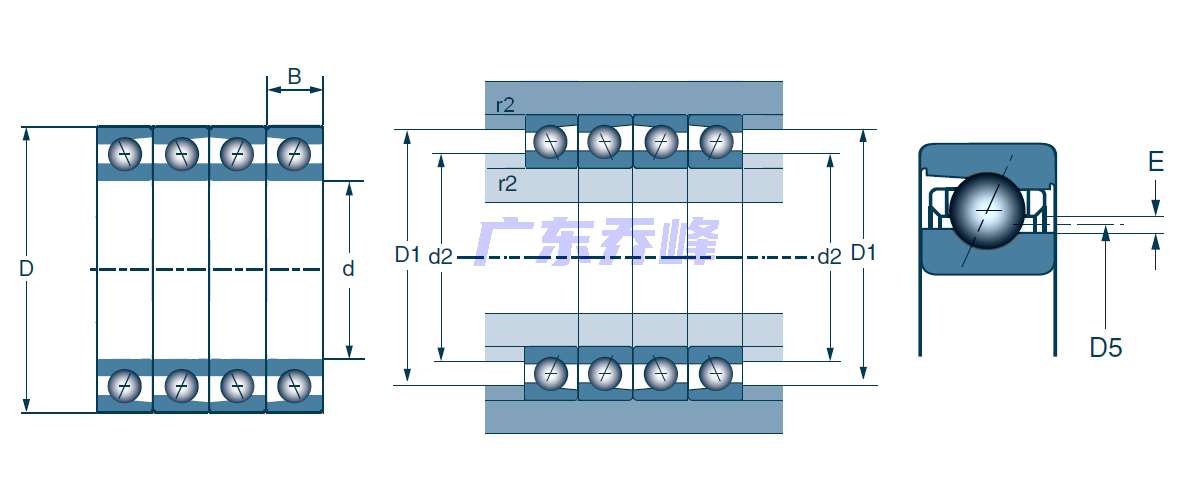| 四列角接觸球軸承,機床用,Q25型 - 尺寸 | |