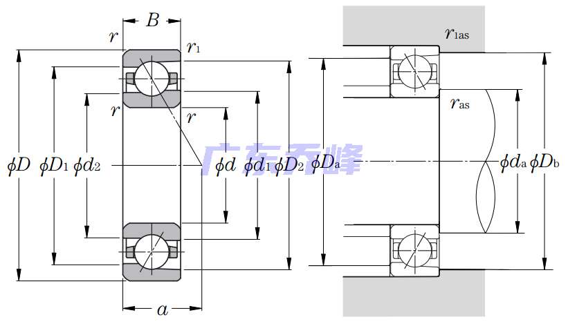 單列角接觸球軸承,默認接觸角:30o
