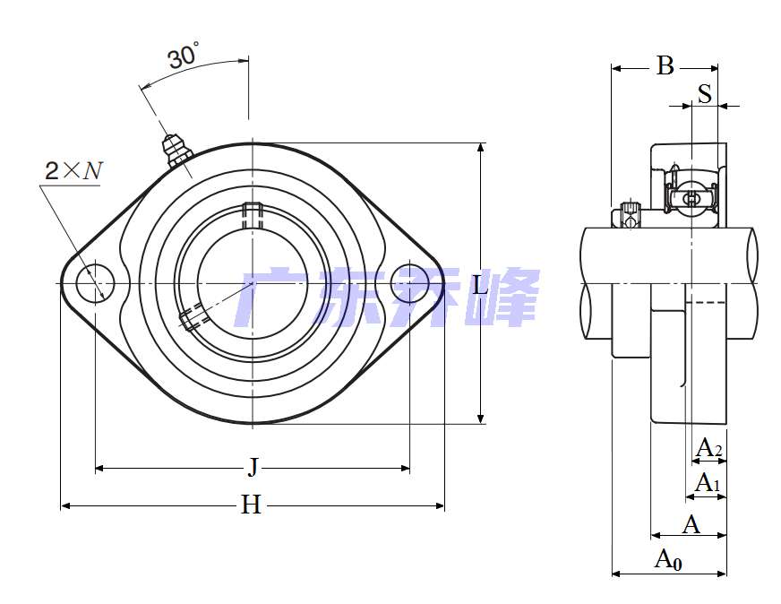 | 類型 | 雙螺栓菱形法蘭式軸承座單元 |
