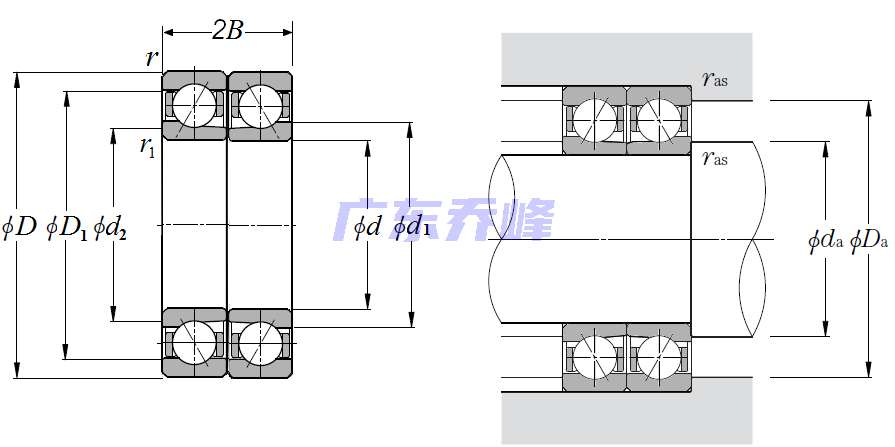 | 電機(jī)和車床用雙列角接觸球軸承 - 背對背配對 - 尺寸 | |