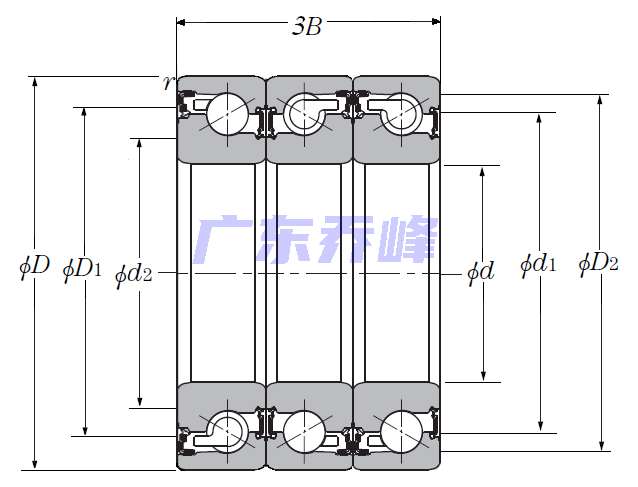 | 滾珠絲杠用三列推力角接觸球軸承 - DBT配對,雙面密封,兩排承受軸向載荷 - 尺寸 | |