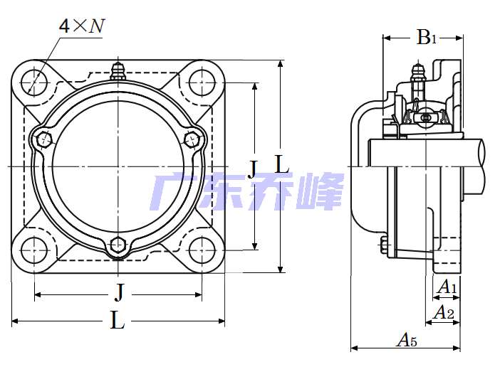 | 類型 | 四螺栓方形法蘭式軸承座 |