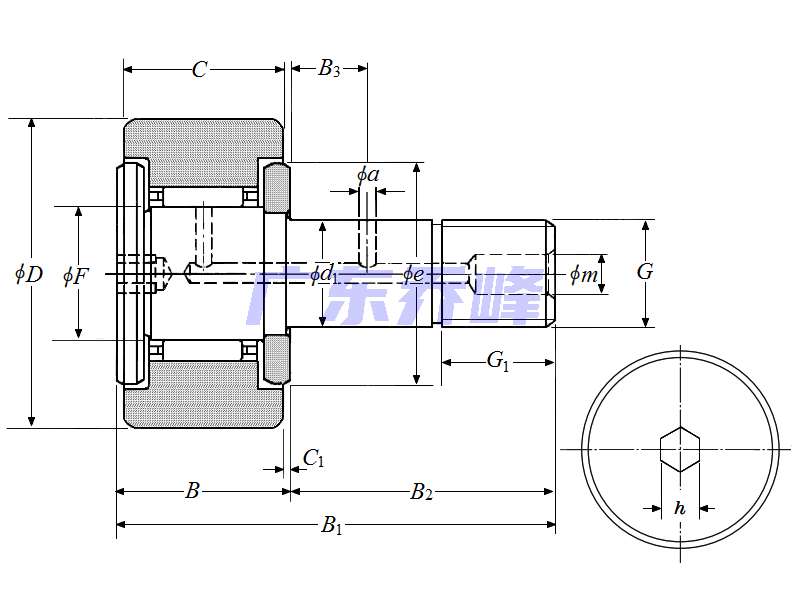 | 凸輪從動螺柱式滾輪軸承 - 圓柱外徑,CR..H型 - 尺寸 | |