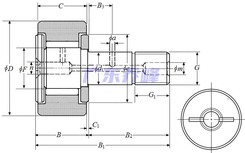 | 凸輪從動(dòng)螺柱式滾輪軸承 - 圓柱內(nèi)徑,CRV型 - 尺寸 | |