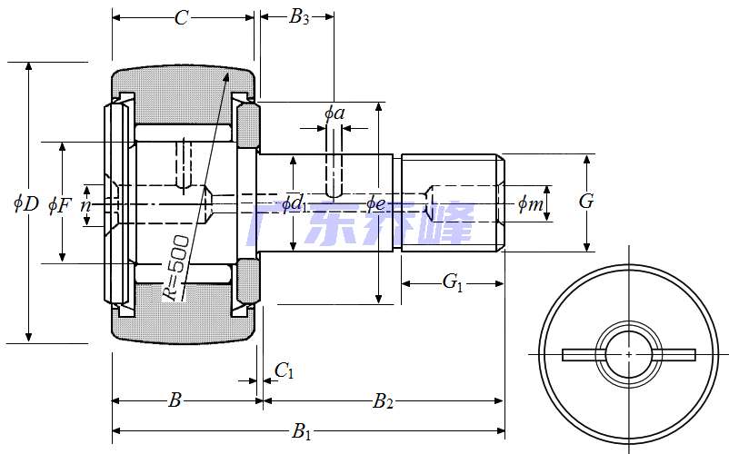 | 凸輪從動(dòng)螺柱式滾輪軸承 - 球面外圈,CRV..LL型 - 尺寸 | |