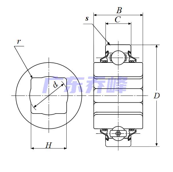 | 重型盤式軸承 - 方孔,圓柱內徑,5型 - 尺寸 | |