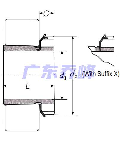 | UKFS308D1 (when used with H2308X) | 詳細尺寸,d:35.000mm,c:50.000mm,b:40.000mm,j:112.000mm,r:150.000mm |