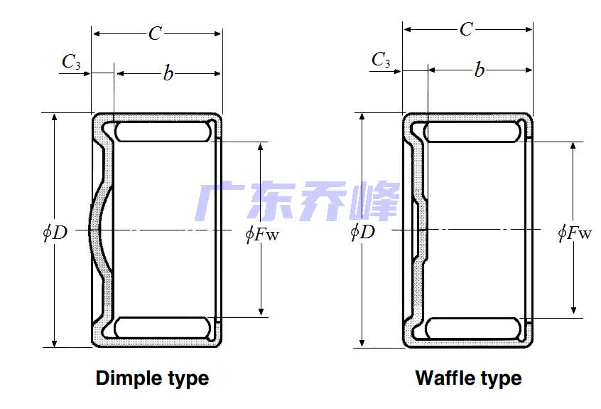 | 沖壓外圈滾針軸承 - HCK型 - 尺寸 | |