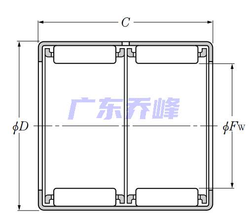 | 沖壓外圈滾針軸承 - 雙列HK,HMK型 - 尺寸 | |