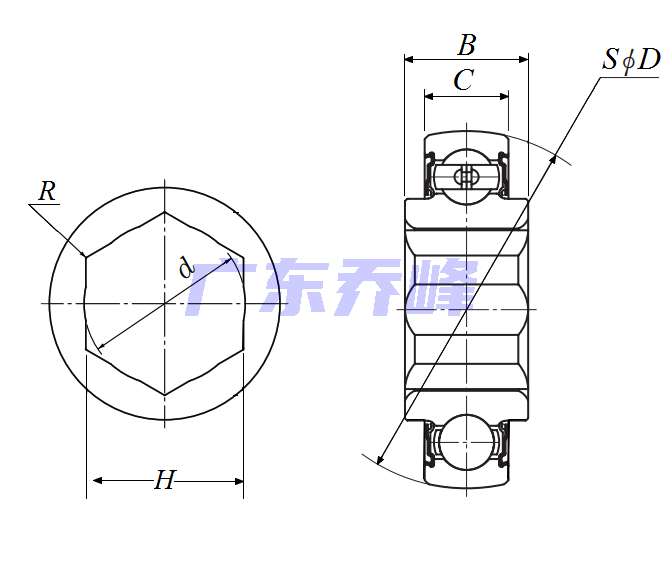 | 帶緊定襯套的軸承 - HP型,六角孔,球面外圈 - 尺寸 | |