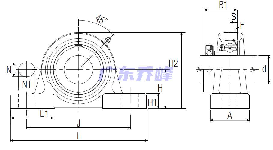| 超一流軸承座帶偏心鎖緊套,中心低,JELPL型 - 尺寸 | |
