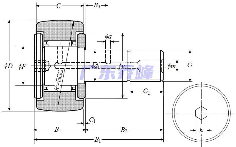 | 凸輪從動螺柱式滾輪軸承 - 球面外圈,KR..H型 - 尺寸 | |