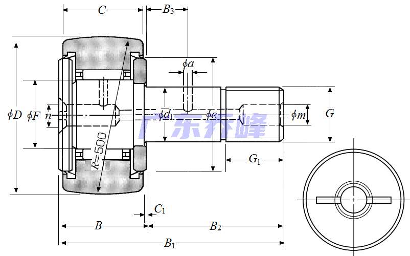 | 凸輪從動螺柱式滾輪軸承 - 球面外圈,KR..LL型 - 尺寸 | |