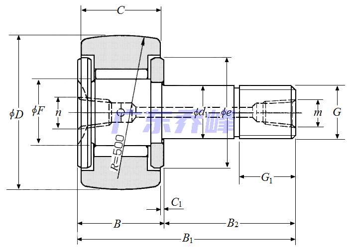 | 凸輪從動(dòng)螺柱式滾輪軸承 - 球面外圈,KR - 尺寸 | |