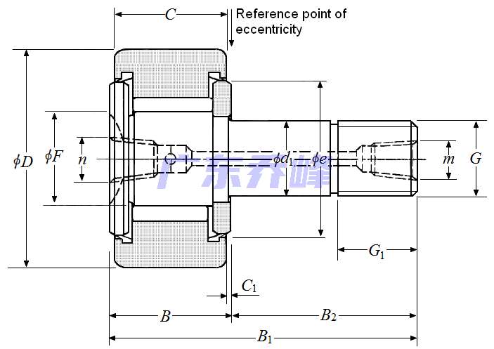 | 凸輪從動(dòng)螺柱式滾輪軸承 - 圓柱內(nèi)徑,KRVU..LL型 - 尺寸 | |