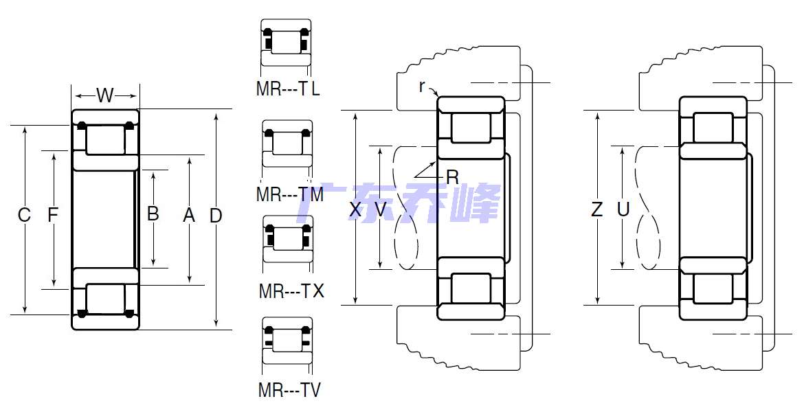 MR:M:NTN BOWER產(chǎn)品,標(biāo)準(zhǔn)公制尺寸系列,R:內(nèi)圈單擋邊