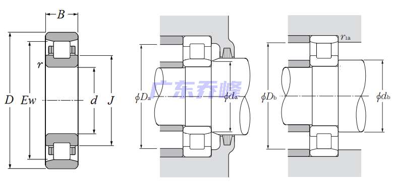 圓柱滾子軸承 -內圈帶兩個加強筋,可分離型,普通外圈 - 尺寸