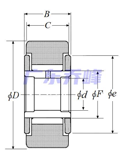 | 擋圈型滾輪軸承 - 帶內圈,NACV型,圓柱內徑 - 尺寸 | |