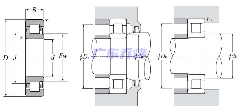 NJ:外圈雙擋邊,內(nèi)圈單擋邊