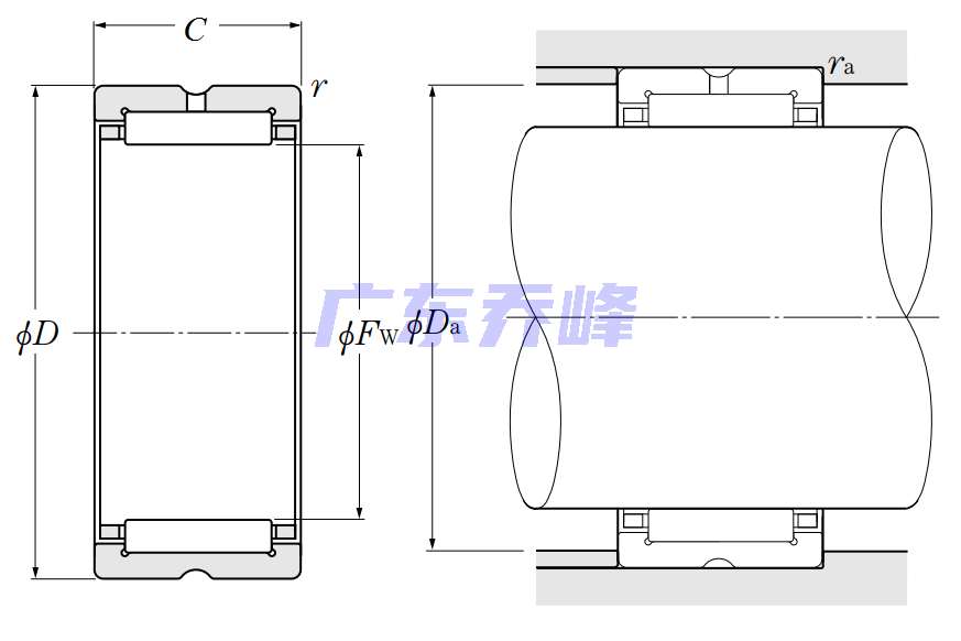 | 機加工滾針軸承不帶內(nèi)圈 - RNA49.R,RNA59,RNA69.R,NK.R,MR系列 - 尺寸 | |