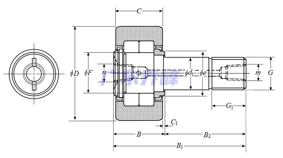 | 凸輪從動螺柱式滾輪軸承 - 圓柱內(nèi)徑,NUKRT型 - 尺寸 | |
