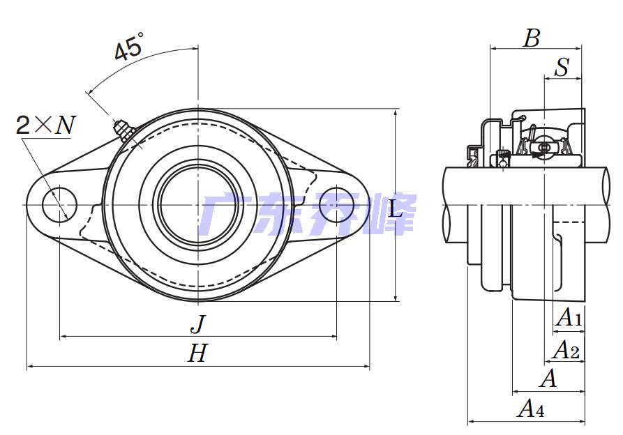 | 類型 | 雙螺栓菱形法蘭式軸承座單元 |