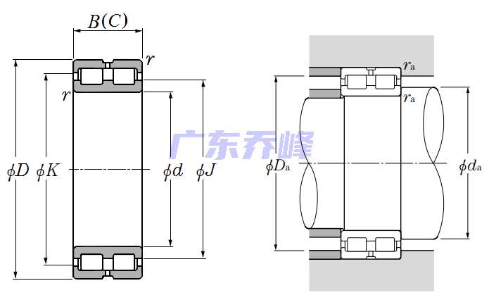 | 雙列圓柱滾子軸承帶Free Side - SL02型 - 尺寸 | |
