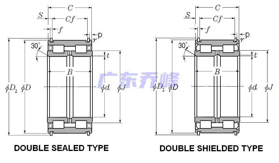 | 滑輪用雙列圓柱滾子軸承帶止動環 - 尺寸 | |