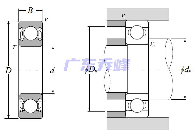 | 單列深溝球軸承 - Removable Double Shield - 尺寸 | |